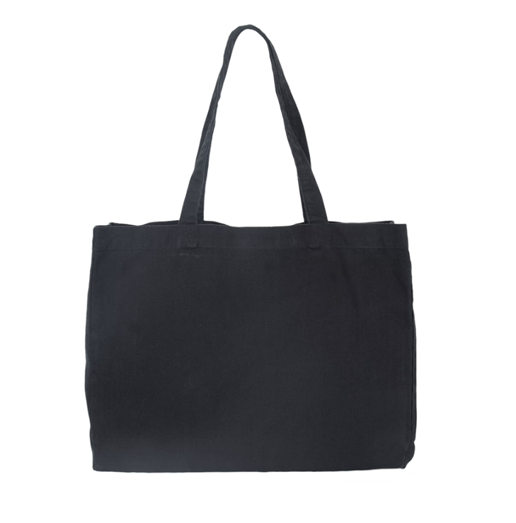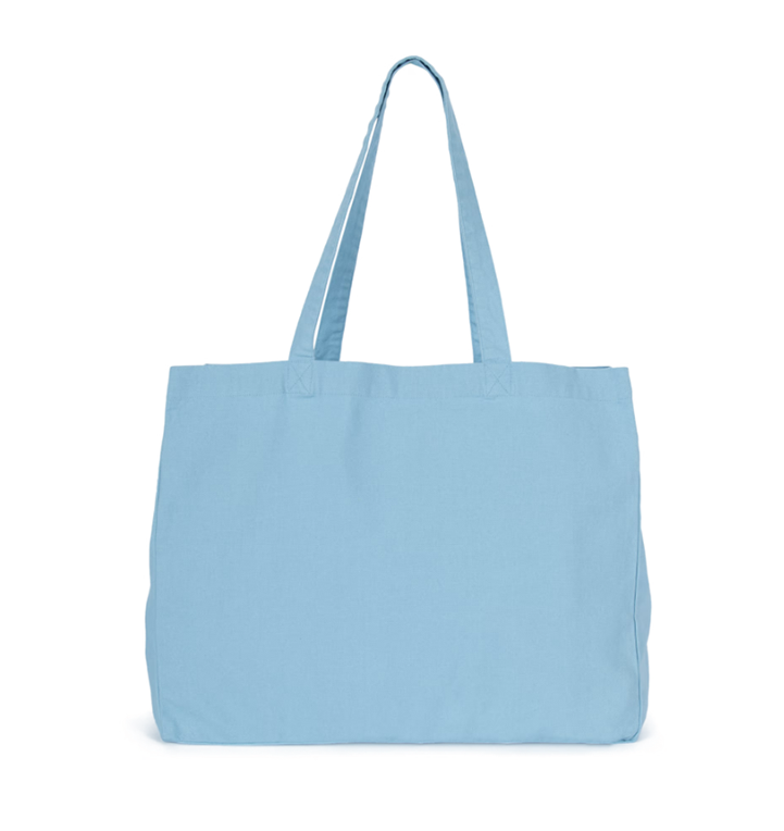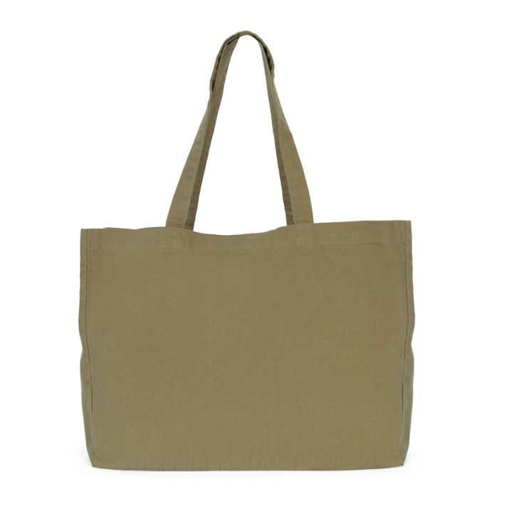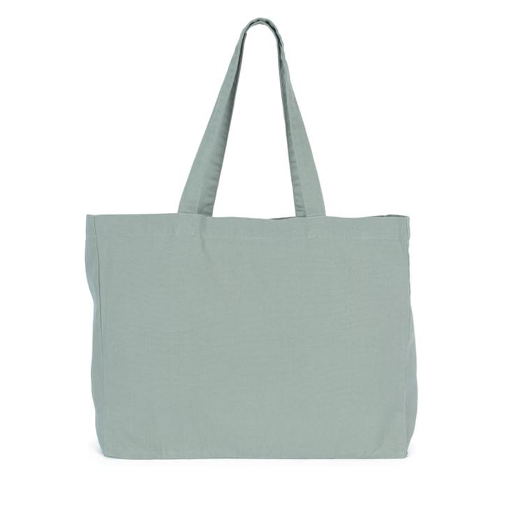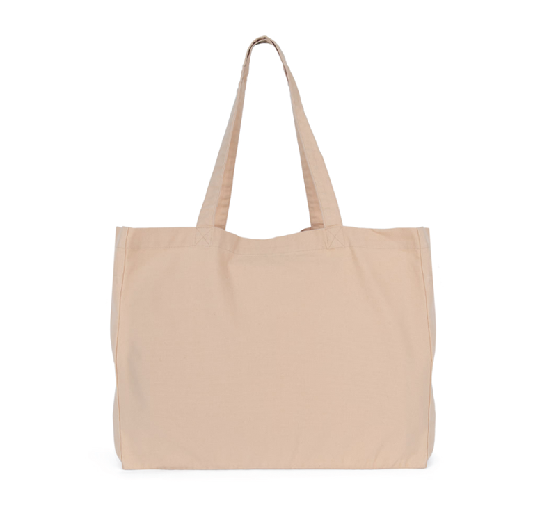 100% cotone. Shopper rettangolare con ampio soffietto. Manici nello stesso materiale della borsa. Ampia capacità interna.